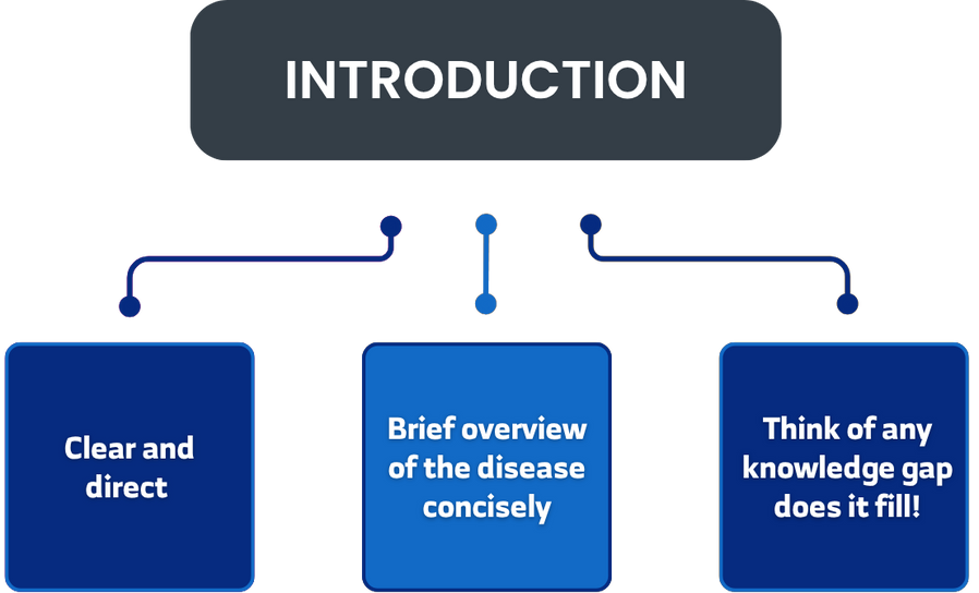 • The introduction usually concludes with a single sentence describing the patient and the underlying condition they presented with.