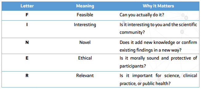 Beyond SMART and PICO(S), a good research question should meet the FINER criteria: