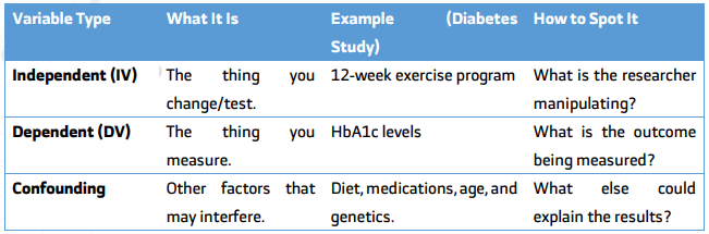 🔍 Practical Tip: Always look for a control group when reading a study! If there isn’t one, the results are weaker. Ask: “Compared to what?”
