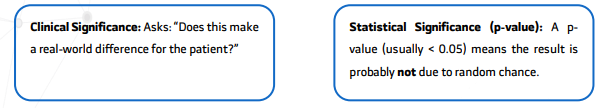 💡 Practical Tip: Don’t be fooled by a p-value alone! Ask if the result truly matters for patients.